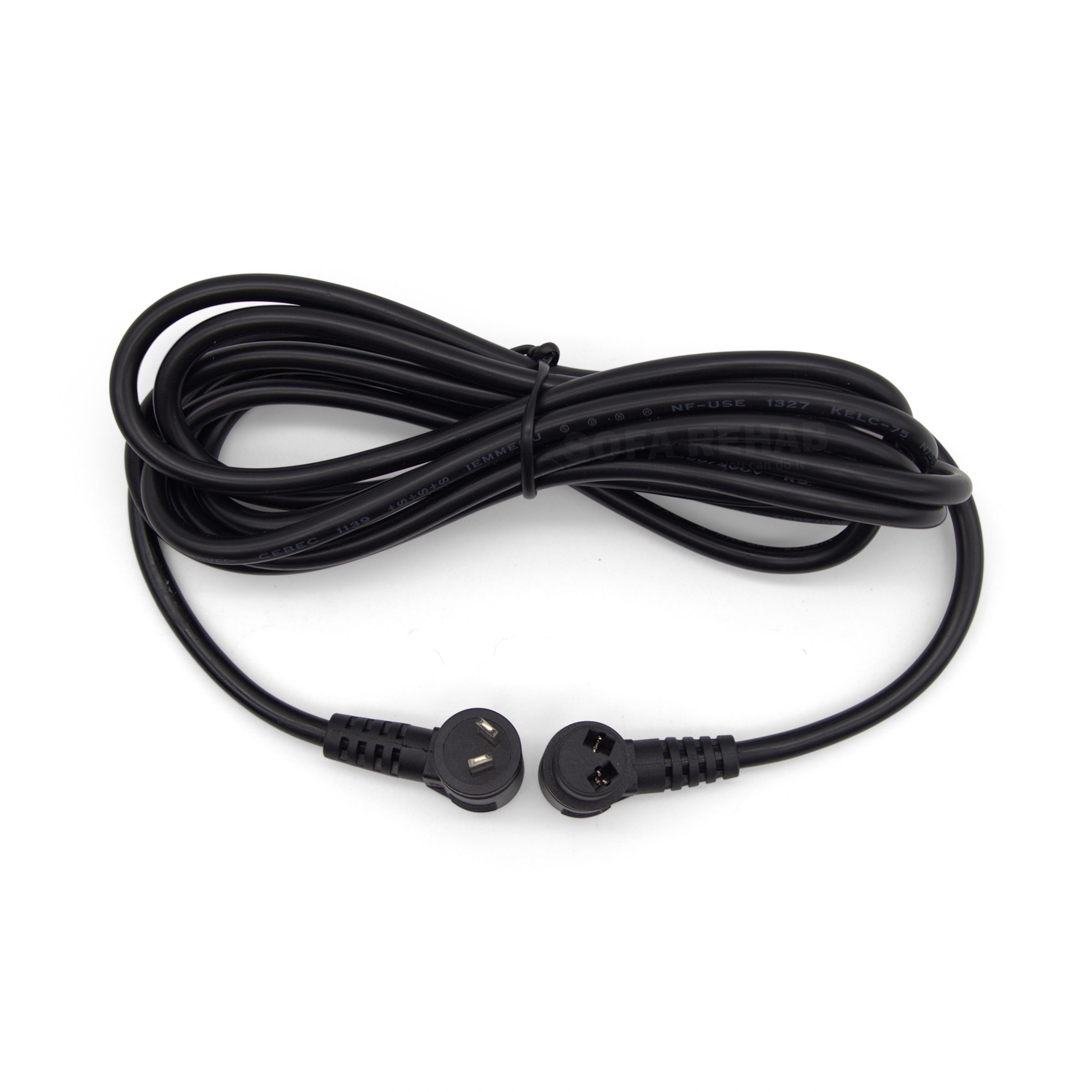 Featuring round 2 pin male to female connectors with flat blade pins set at a 45 degree angle, this cable is specifically suited to select Dewert and Okin systems. Both ends are 90 degree angled, allowing for a neater installation in tight spaces while reducing strain on the cable and connectors.
