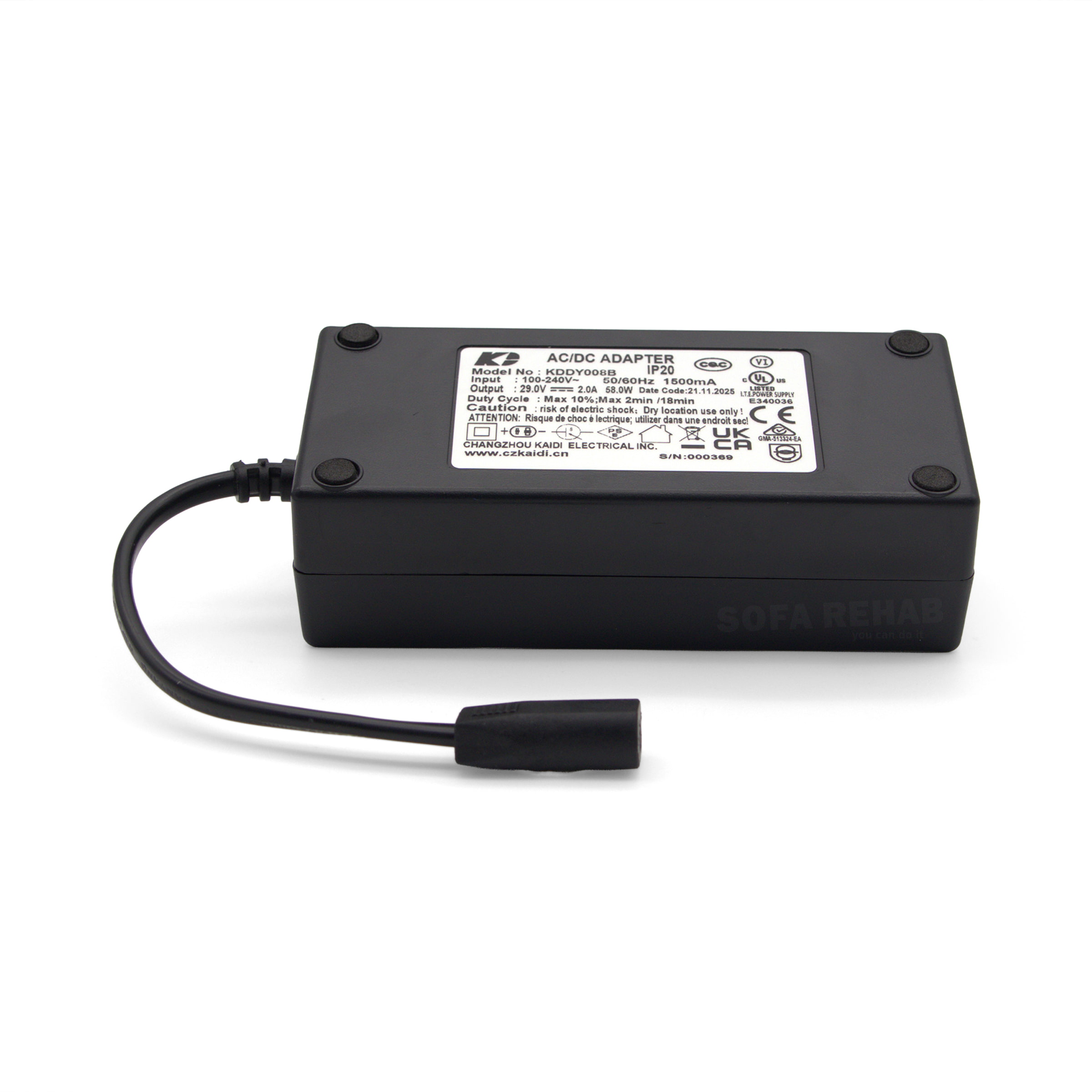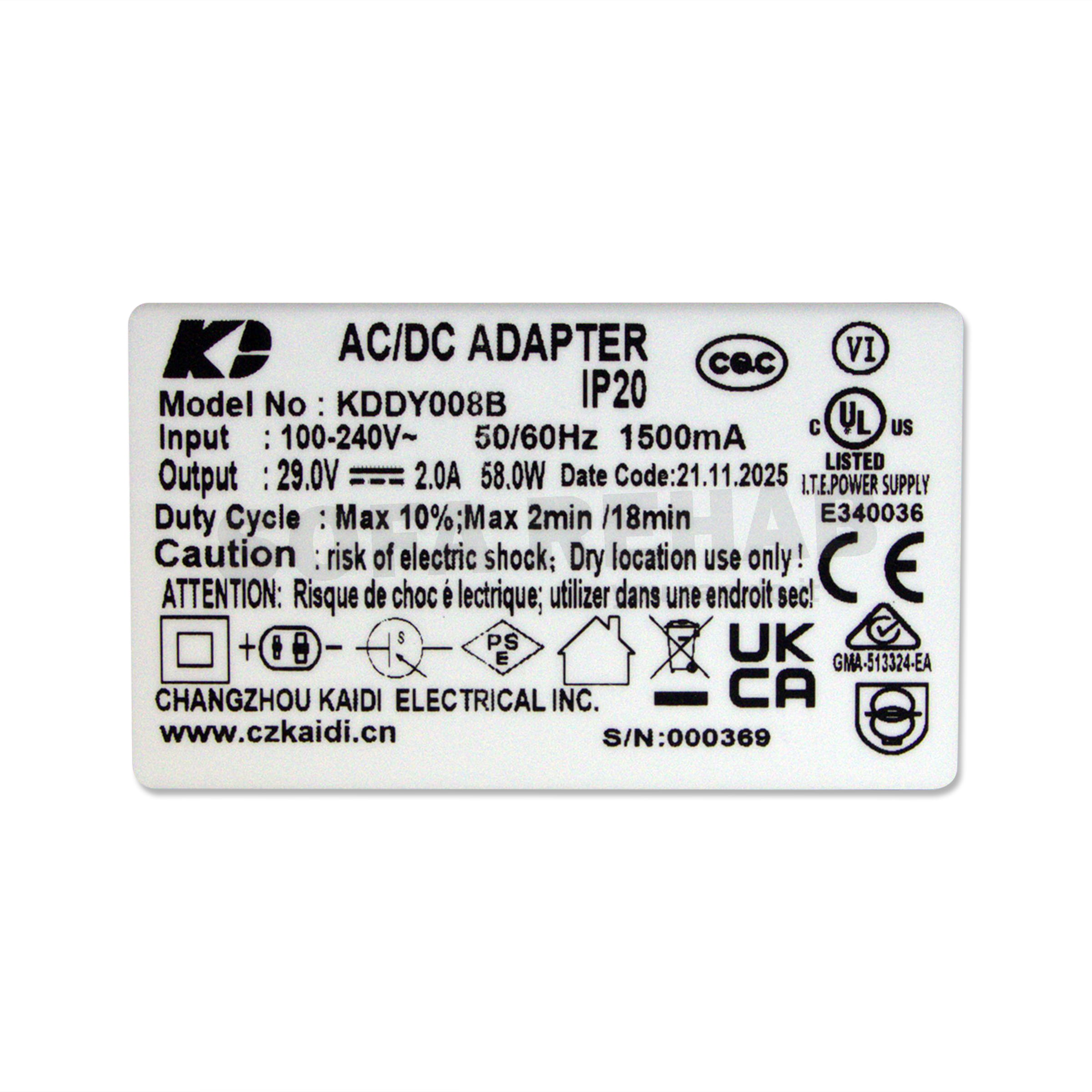 • KDDY008B-transformer-rating-label-bottom-view-29V-2.0A