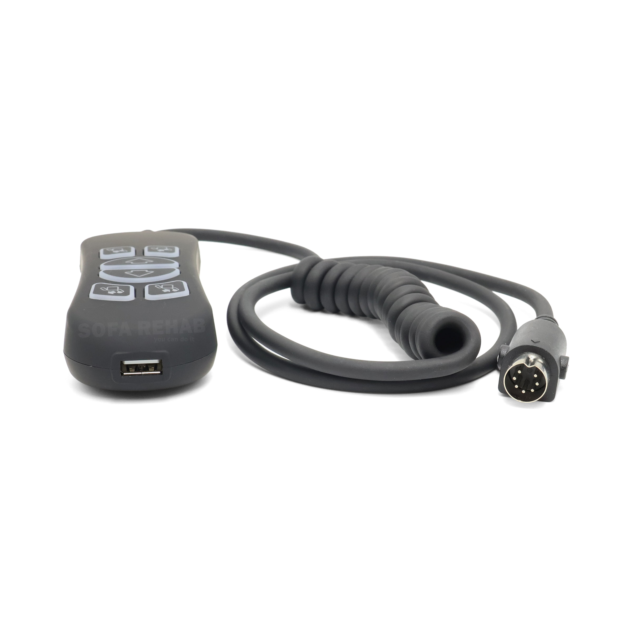 Replacement HHC electric recliner HSW306, is a 6 button power recliner remote control wand with USB charge port used to operate electric recliner chairs, sofas and lift recliner chairs with triple actuators. The cable is part straight & part coiled & has a straight 7 pin din plug. HHC Electric Recliner Chair Controller 2 Button Remote for recliner chair or lift chair controller replacement with 6 large illuminated and easy to press buttons and a handy USB charge port. 'You Can Do It' Yourself and Save $$$. Easy fitting in under 5 minutes. No handyman skills required and no tools or experience required. read more