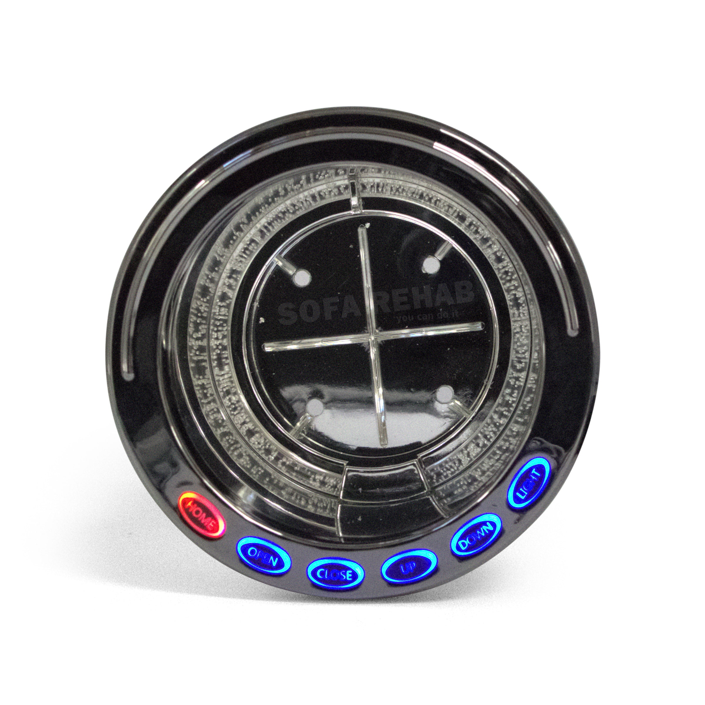Upgrade or replace your existing recliner armrest control with the Mulin MLZB020-D4 multifunction cup holder controller. Designed for modern electric recliners, sofas and theatre lounges, this unit combines a built-in cup holder with a full control panel and LED lighting system. Featuring 6 silicone touch buttons, it allows you to control footrest movement, headrest adjustment, lighting functions and the home/reset position all from one convenient location.