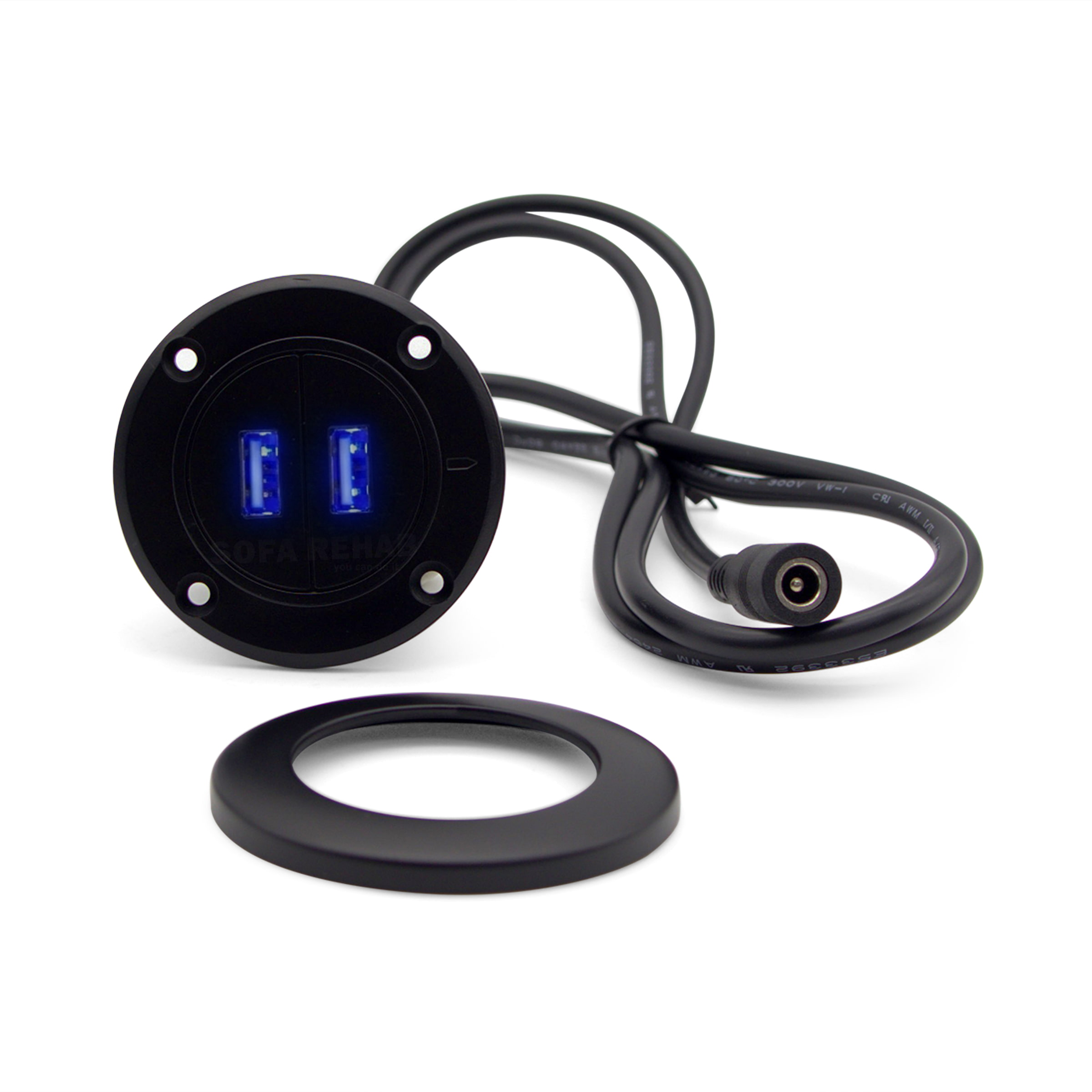 Dual USB charging port for recliner chairs, sofas and theatre lounges. The Mulin MLCZ015 is a compact round unit with two USB-A ports that illuminate blue when powered, allowing you to conveniently charge devices directly from your furniture. Designed for low voltage systems (9–30V DC), it’s ideal for replacing a faulty USB port or adding built-in charging. Dual USB Recliner Charging Port – Blue LED. Features 5V 1A and 5V 2A outputs with a clean, flush-mount design and removable screw cover for neat installation. Looking for Another Charging Port? We stock a range of USB charge ports and charging stations click (HERE) to view our full range read more